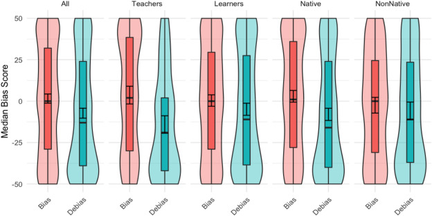 We conducted a randomized controlled trial with 1,038 participants (teachers and learners) across multiple countries, targeting 21 distinct biases.